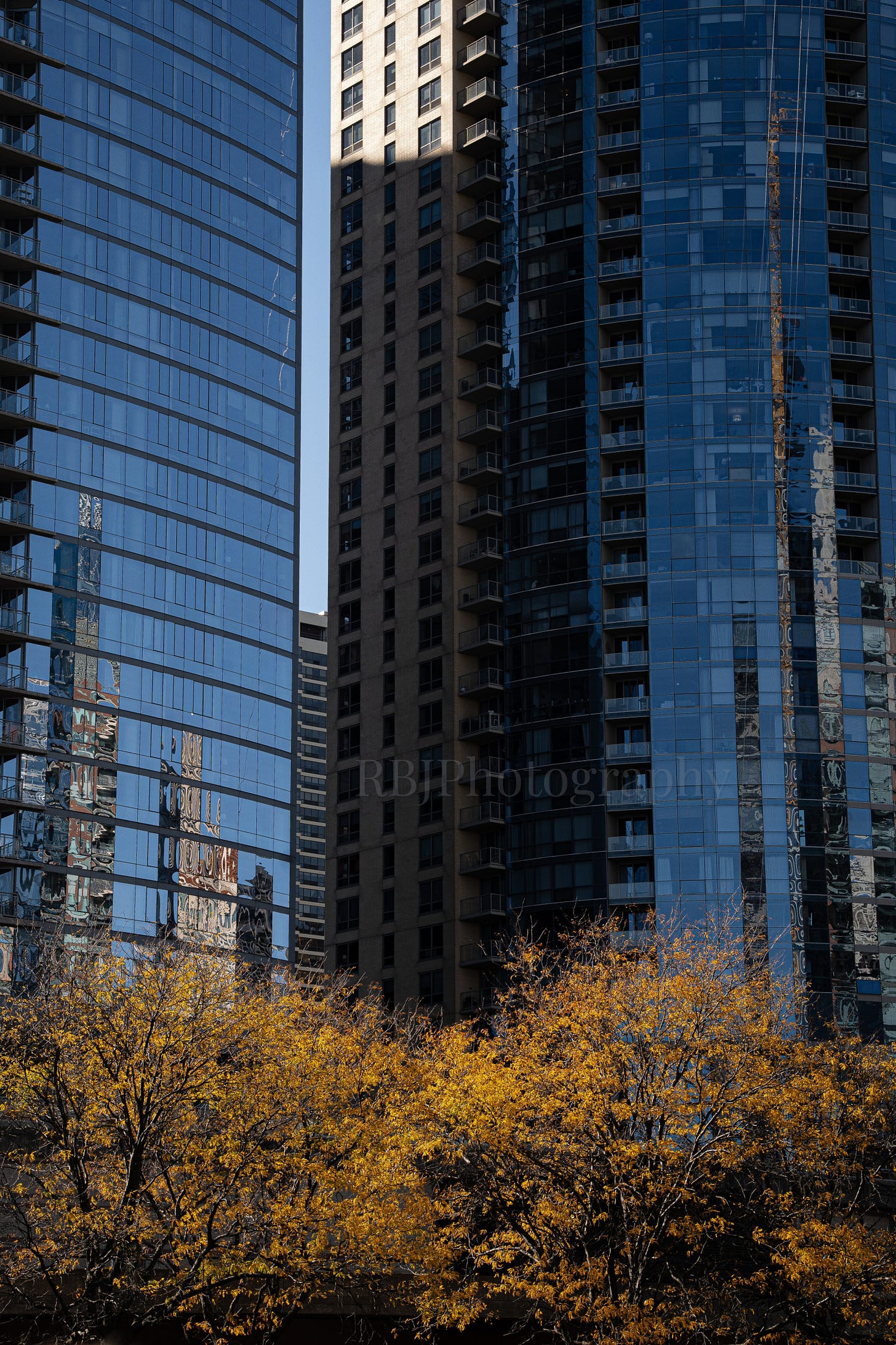 The Chicago River runs through the city much like the Colorado River carves its way through the Grand Canyon. As we floated along, the skyscrapers cast deep shadows over the water. In those dark stretches, I looked for the bits of light that slipped between the buildings and shone onto nearby walls. The glass towers made things even more dramatic, reflecting the sunlight down into the shadows. It was amazing to watch, and my eyes kept moving back and forth between the two sides of the river.