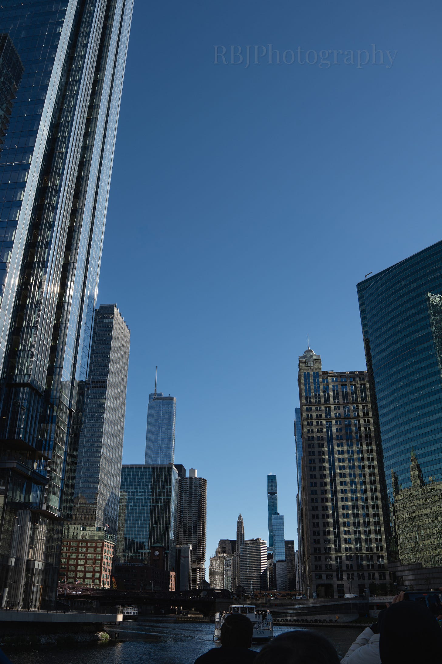 The sky was crystal clear, transforming the glass skyscrapers into towering mirrors. As I took photos, I noticed the city reflected in the modern skyscrapers, bending and warping the shapes of neighboring buildings. From the boat, the buildings faded into the blue, making it difficult to see where the steel stopped, and the sky began.